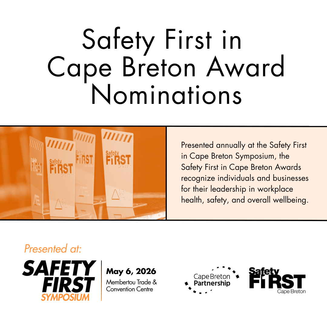 To nominate an individual or organization for a Safety First in Cape Breton Award, please visit https://capebretonpartnership.com/safety-first-awards and make a nomination by noon on Wednesday, April 1, 2026.