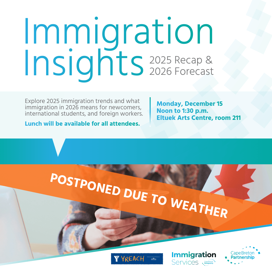 Are you interested in learning more about Immigration? Join the Cape Breton Partnership’s Dani Mombourquette, Immigration Engagement Coordinator, for a one-hour information session at 3 p.m. on Wednesday, February 19, at the The Whale House in Sydney, Cape Breton Regional Municipality. This session will focus on immigration options to stay…
