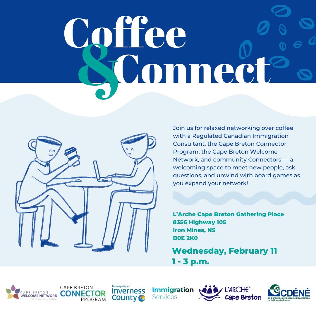 Join us for relaxed networking at a local coffee shop with your Cape Breton Connector Program Coordinator, the Cape Breton Welcome Network and a Community Connector – an easy way to connect, share stories, and grow your network!