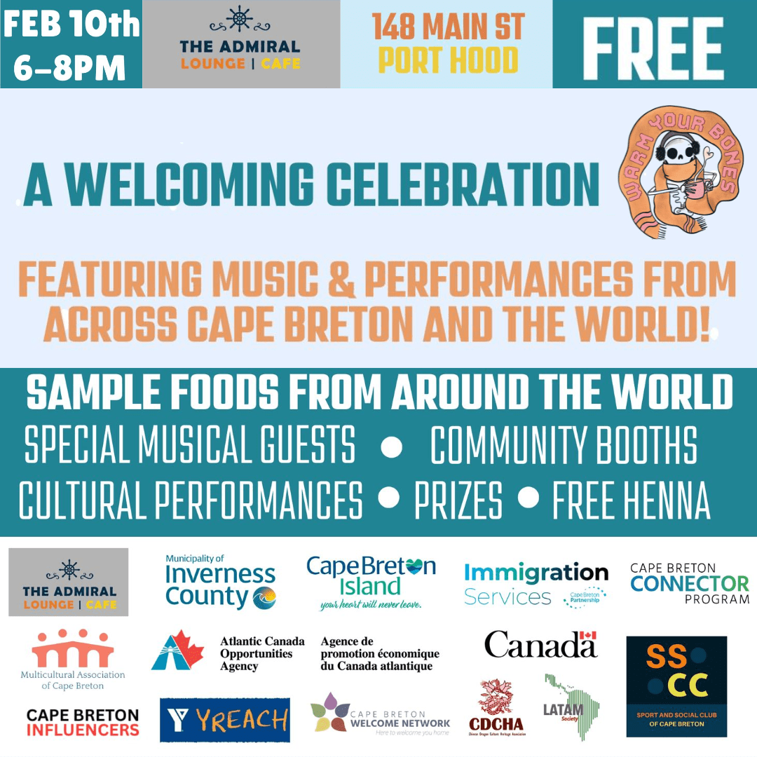 Warm your bones with talent from around the world on Feb 10th in Port Hood in the Municipality of the County of Inverness for a FREE multicultural night at the Admiral Lounge and Café featuring incredible local performers, global flavours, and fun surprises! What’s happening? Special Guests: We are honoured…